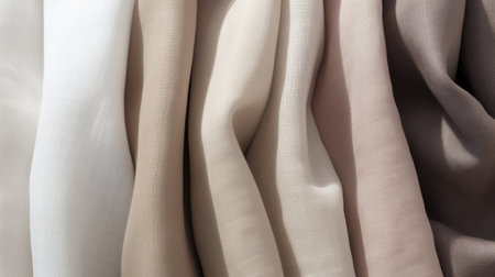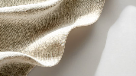 Soft linen fabric draped elegantly, showcasing its delicate texture and natural fibers. warm beige color adds touch of sophistication, perfect for various design applications