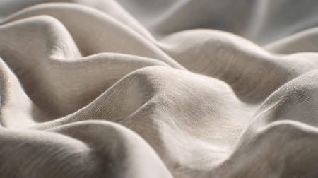 A detailed close-up of soft linen fabric showcasing gentle creases and textures. Ideal for textile showcases, decor inspiration, or fashion projects focusing on natural materials.