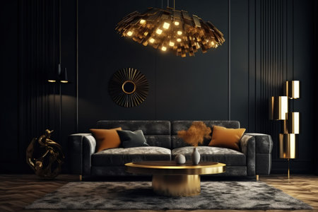 Black and gold luxury living room with coffee table