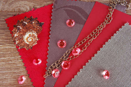 Golden colored women accessories collection on soft fabric