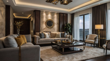 Decadent Glamour: Art Deco Inspired Living Room with Luxurious Touches