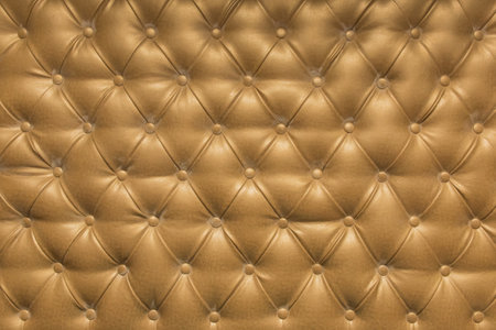 Gold leather upholstery sofa pattern button design furniture style decor texture background decoration vintage golden abstract.
