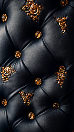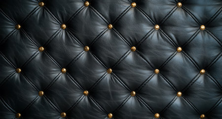 Luxurious background of black leather with gold button tufting, ideal for upscale interior design concepts