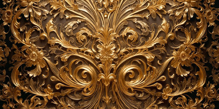 Gilded baroque background with intricate ornamental golden floral patterns on a dark backdrop.