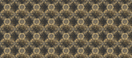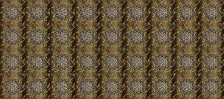 Classic vintage background. Seamless pattern on brown, gray and beige colors with golden elements. Seamless classic raster golden pattern. Traditional oriental ornament.