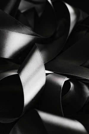 A minimalist black funeral ribbon on a dark background, ideal for memorial banners, sympathy cards, and condolence messages in stock photography.