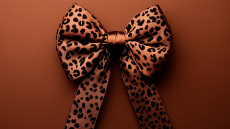 A closeup shot highlights a lustrous bronze ribbon tied into a sophisticated bow against a dark, textured background. The rich color and texture evoke a sense of luxury and warmth.