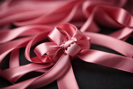 Beautiful pink ribbon on black background, closeup.