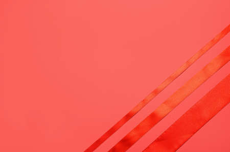 Red ribbons on color background