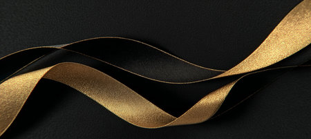 A matte black background with gold ribbon accents. The flowing gold ribbons add a touch of graceful elegance to the luxurious black surface.