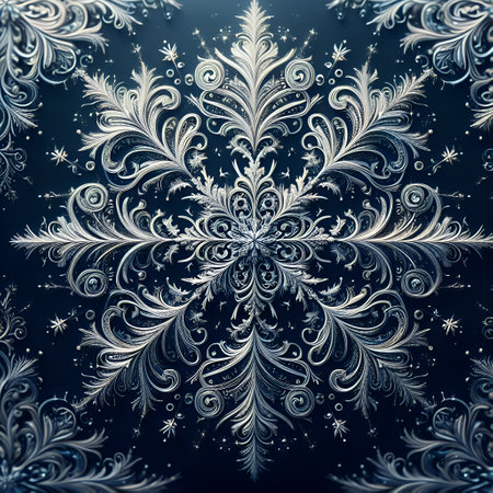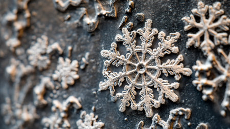Discover a stunning collection of elegant snowflake patterns on a dark background, ideal for winter-themed decor, holiday designs, and festive events.