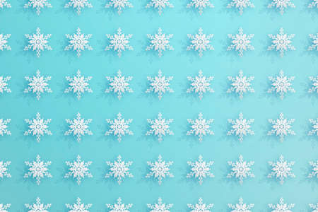 Seamless pattern with paper cut snowflakes. Christmas design 3D illustration on teal colored background for presentation, banner, cover, web, flyer, card, sale and social media.