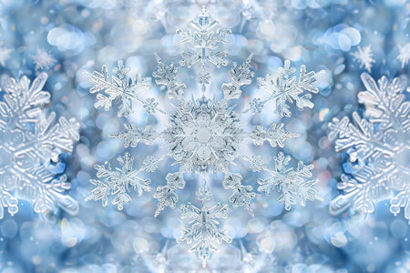 Illustrations of winter snowflakes featuring intricate and shimmering patterns in frosty blues, capturing the beauty and purity of snowflakes in seamless designs perfect for winter-themed backgrounds and decorations.