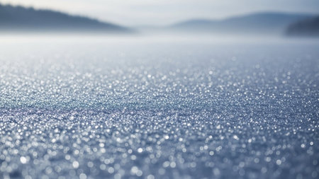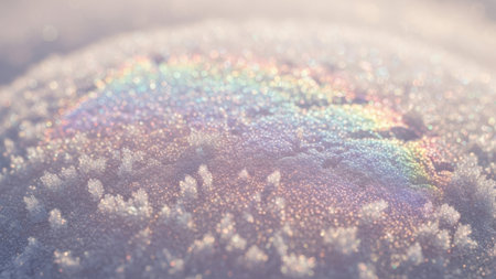 Shimmering granular frost surface with soft pastel light, perfect for abstract backgrounds, holiday design projects, and atmospheric texture content