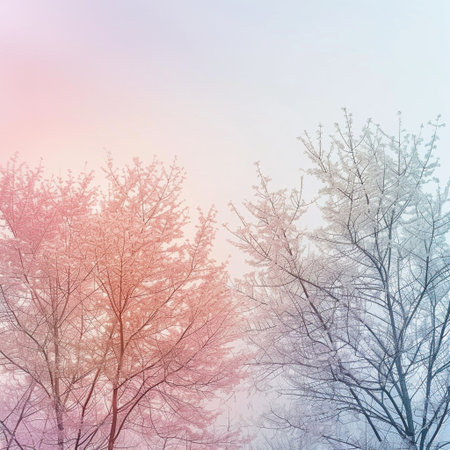 A serene snowy landscape featuring soft pastel colors and sparkling snowflakes, creating a peaceful ambiance