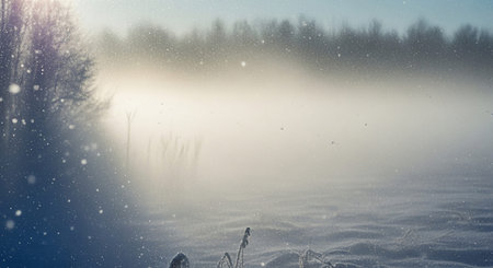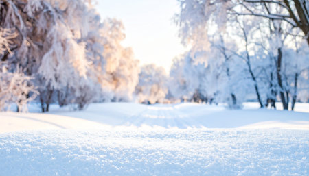 A beautiful snowy surface illuminated by soft sunlight creating a dreamy bokeh effect