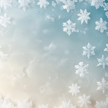 A soft blue and white gradient background faint, delicate ice crystal patterns and a subtle frosted texture.
