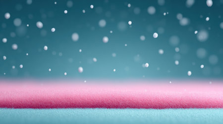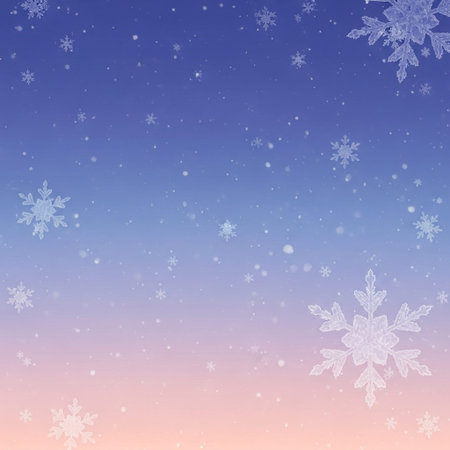 A blue and pink background with snowflakes falling on it. The snowflakes are scattered all over the background, creating a sense of movement and liveliness