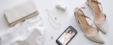 A stylish arrangement showcasing fashion accessories, elegant decor, and a modern smartphone, blending classic and contemporary aesthetics.