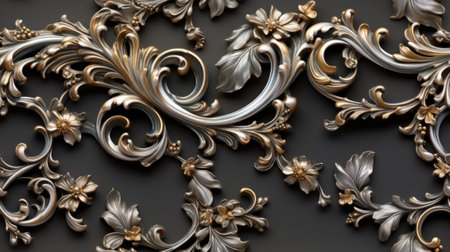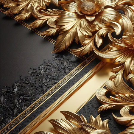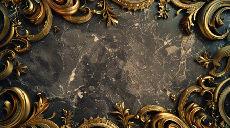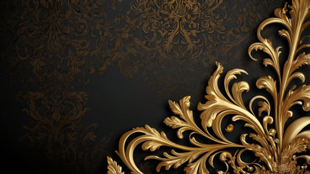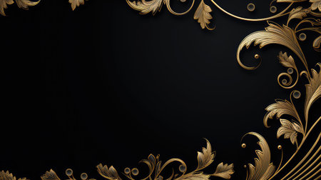 Matte black with elegant golden ornament details, sophisticated baroque luxury background