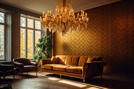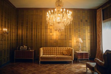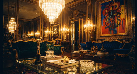Luxury chandelier illuminates elegant domestic room in famous historic building generated by artificial intelligence