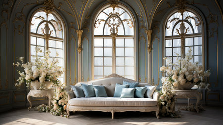 expensive designer royal interior with exclusive luxury elements. High quality illustration