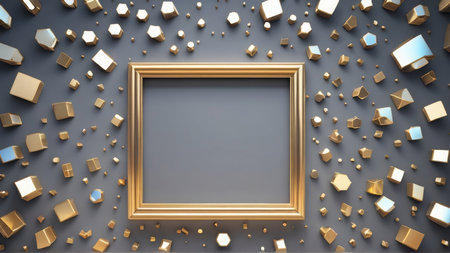 Luxury gold frame on a blue marble background. 3d rendering. generated by AI
