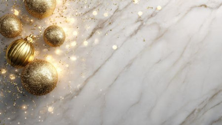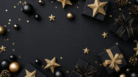 Elegant gold ornaments rest gracefully on a deep black festive background.