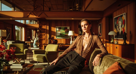 Portrait of a beautiful woman sitting on a sofa in a hotel lobby