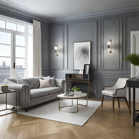 Experience the charm of this elegant living room featuring modern furniture and stylish decor. The warm colors and chic accessories create a cozy atmosphere.