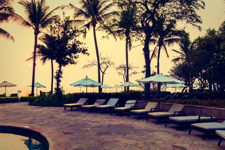 Beautiful luxury hotel swimming pool with umbrella and chair - Vintage Light Filter