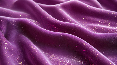 Generative AI Image of Luxurious Purple Silky Fabric Cloth Texture Wave Pattern with Glitter