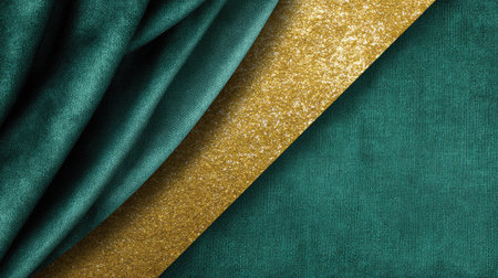 This image features a luxurious arrangement of teal and gold fabrics, showcasing soft textures and glittering accents, perfect for elegant backgrounds.