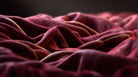 A creative digital illustration depicting High quality commercial digital art of soft velvet folds in deep burgundy, macro close-up texture, soft diffused studio lighting, elegant and opulent composition, rich warm tones, professional illustr. This AI-generated artwork features unique visual elements suitable for various commercial and editorial applications. AI-generated illustration.