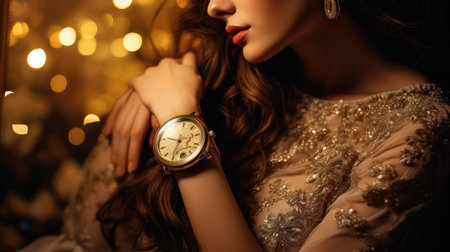 luxury gold watch woman illustration timeless fashion, accessory style, sophisticated chic luxury gold watch woman