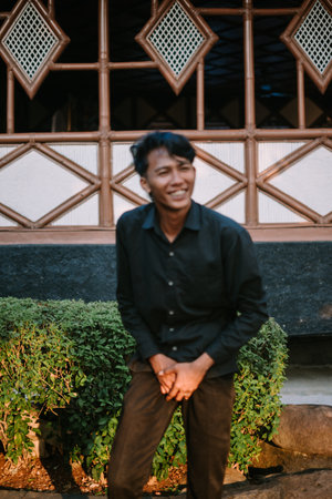 A Southeast Asian man with tattoos sitting and smiling, exuding a relaxed and friendly vibe