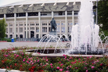 MOSCOW, RUSSIA- July 23, 2017. Luzhniki Stadium. Monument VI Lenin and the fountain in the square.