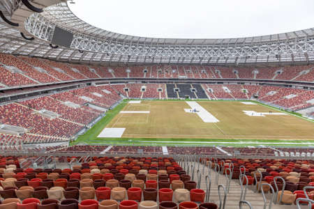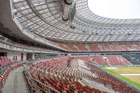 Moscow, Russia - March 14, 2021: Inside the Big sports arena of the Olympic complex Luzhniki. Opened in 1956. The global reconstruction in 2014-2017, which was made for the 2018 FIFA World Cup