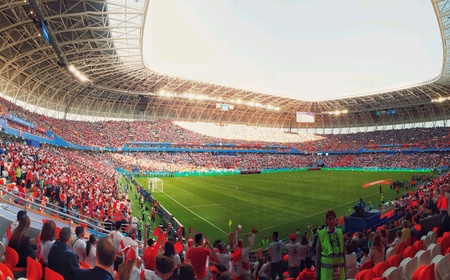 MOSCOW, RUSSIA - JUNE 23: Football mini arena at the Red square, Moscow on June 23, 2018.