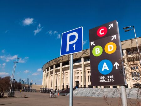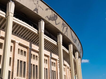 Moscow, Russia - March 2019. Luzhniki Stadium and bright blue spring sky.