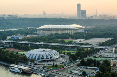 Russia, Moscow, Luzhniki, summer, sunset, aerial view