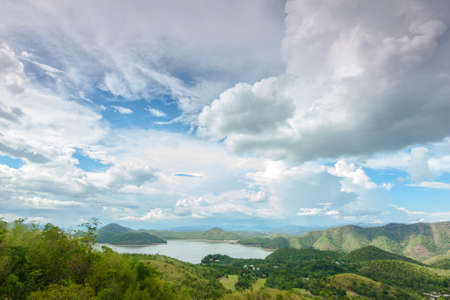 Countryside landscape with river and mountain in Thailand