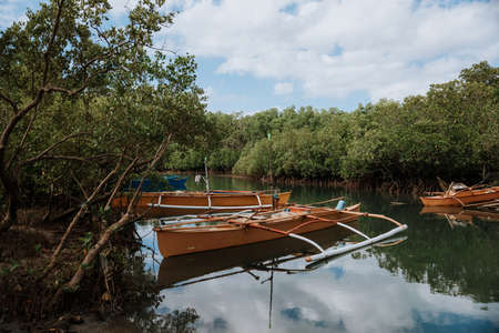 typical filipino boat on the bohol coast in the philippines