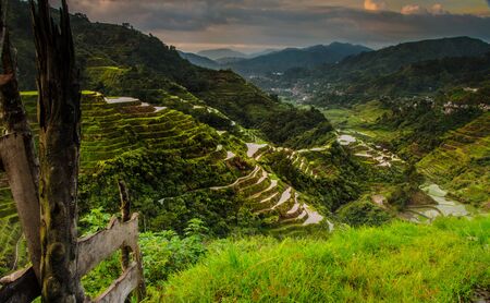 Famous Ifugao Philippines rice terraces at sunset
