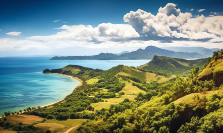 Generative AI : Panoramic aerial view of Maconde Bay with viewpoint and mountain range in the background Maconde Mauritius