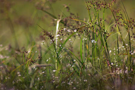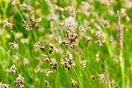 Narrow focus closeup on a flowering field wood-rush grass, Good Friday grass or sweep's brush, Luzula campestris in a meadow