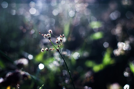 close up of tiny seeds on a weed in the grass with sunlight in the background