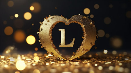 Letter L. Elegant background with golden heart frame elements and glitter light effect decoration created by Generative AI