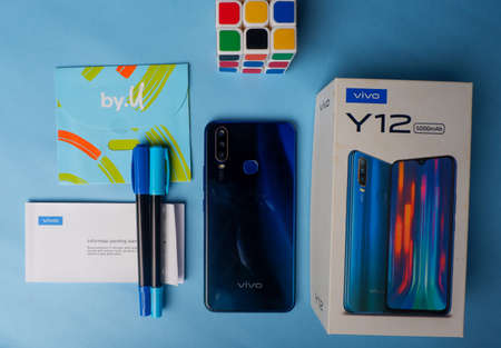 August 3, 2020, photo of a smartphone with a cardboard box and cell phone card, Indonesia