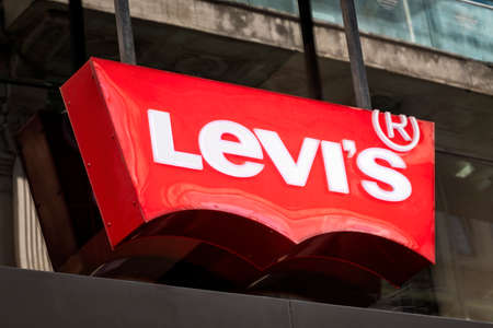 Levi's logo at street, Levi Strauss & Co. is an American clothing company known worldwide for its Levi's brand of denim jeans.